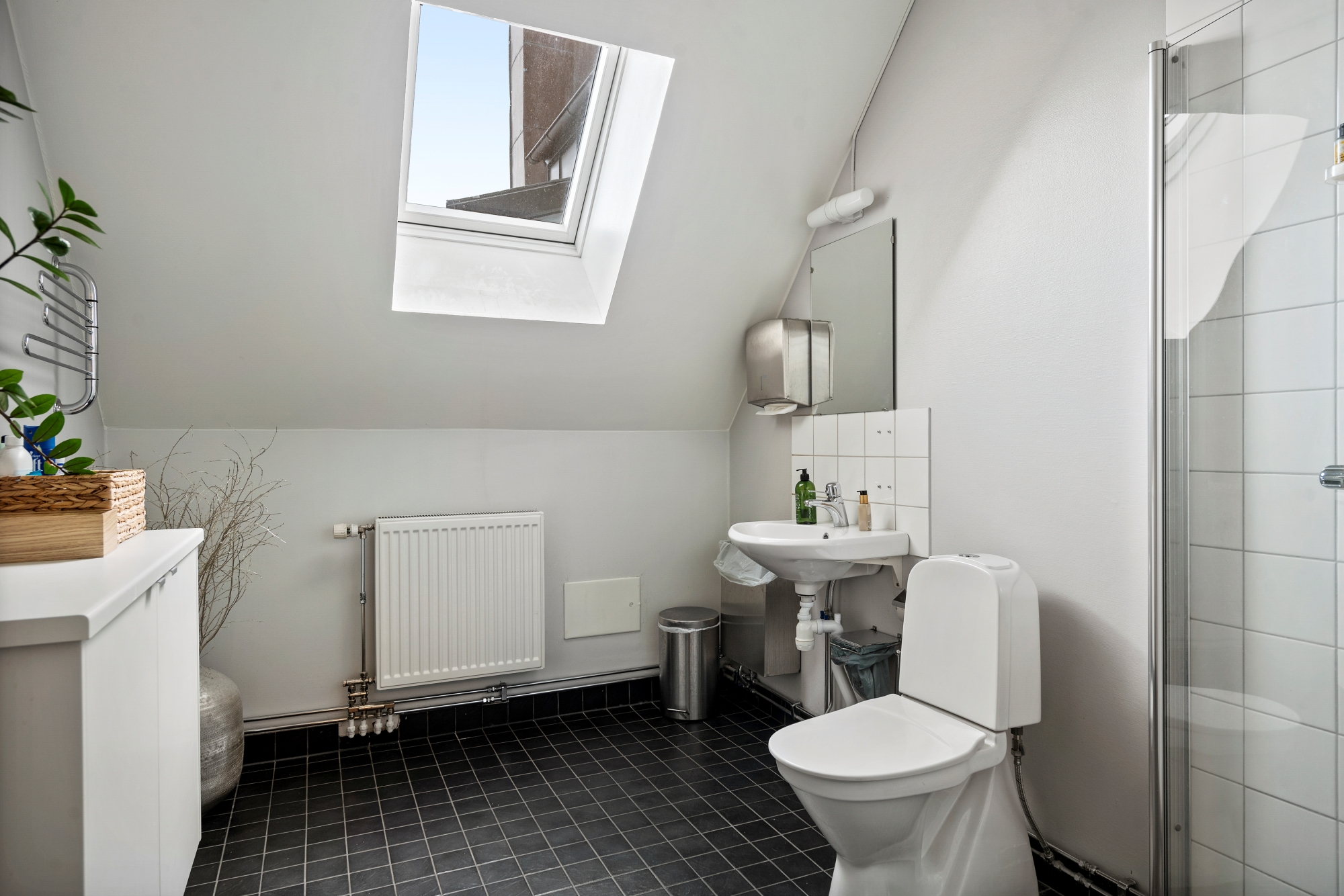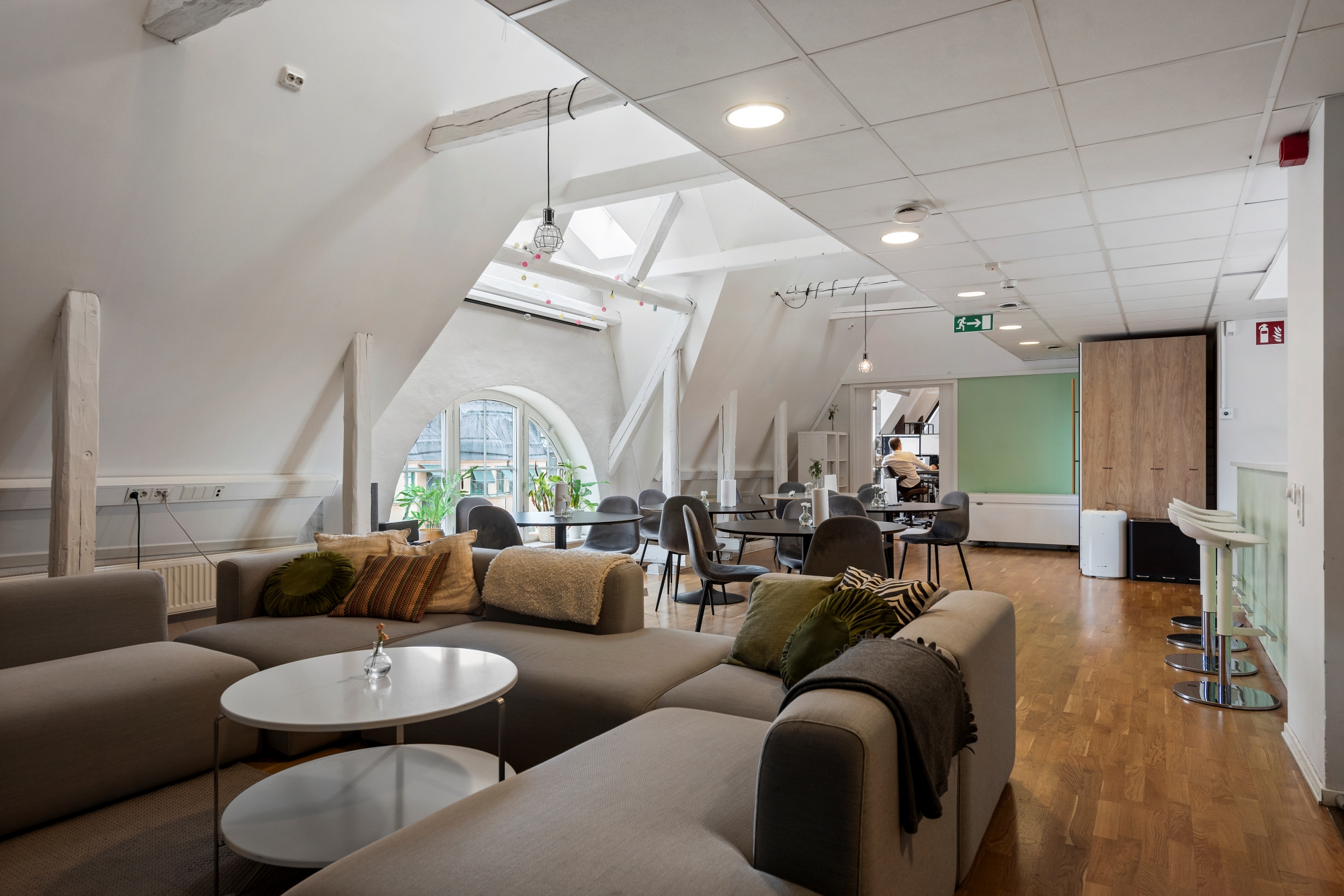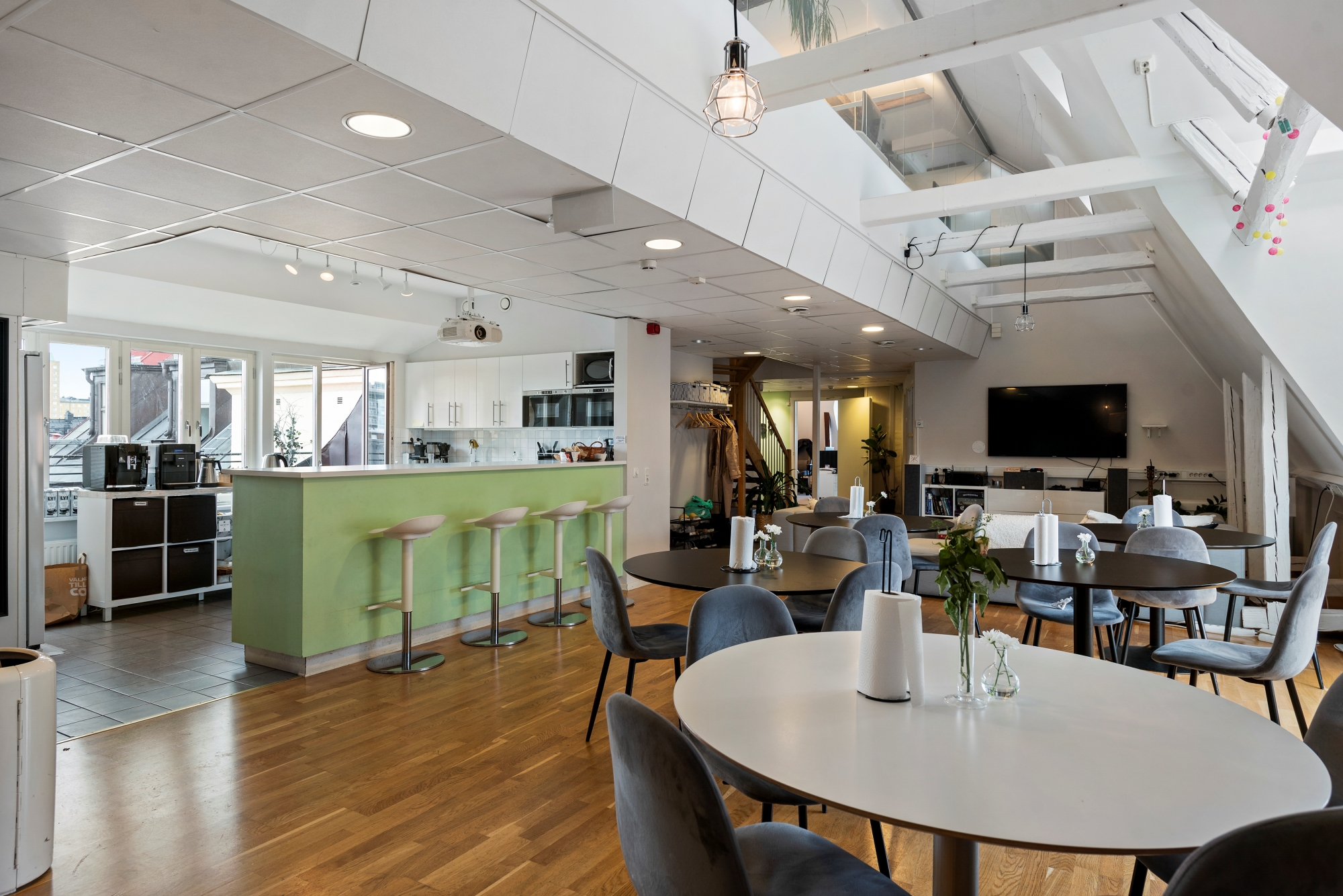 Mycket trevlig vindslokal i två plan med till största delen öppen planlösning. Egen terrass mot gården.