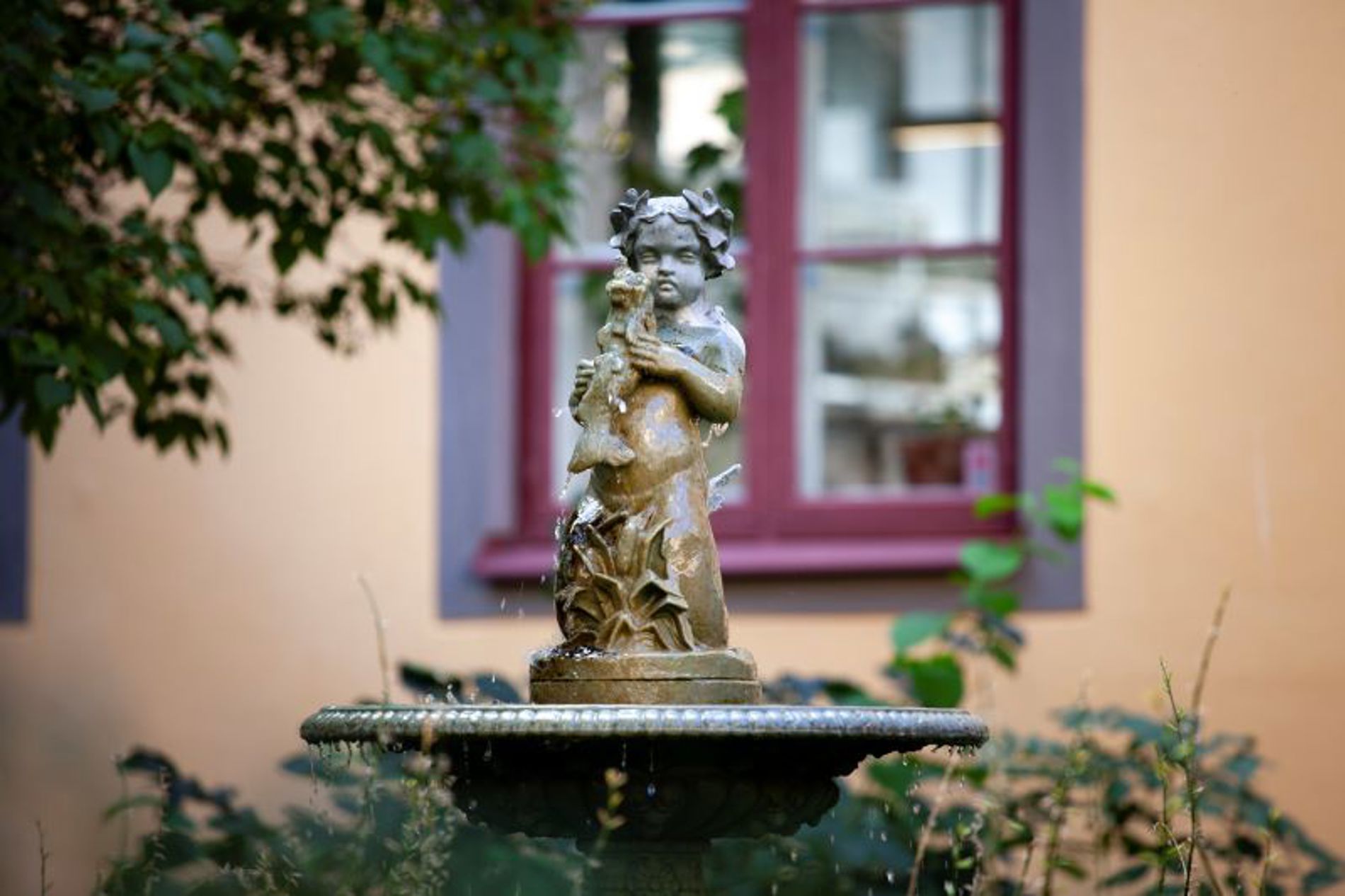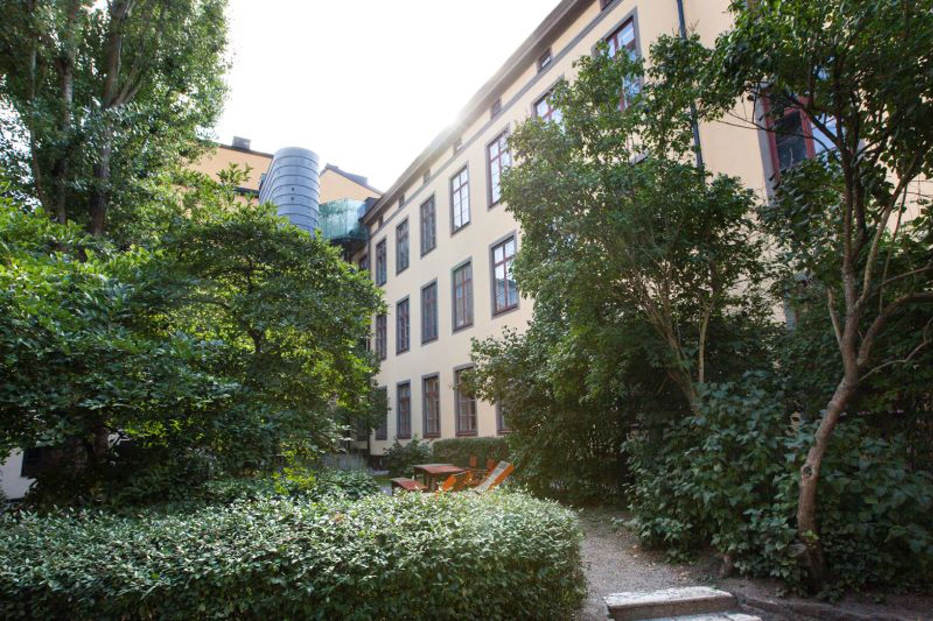 På den harmoniska innegården finns flera popplar och mullbärsträd. Ett väldigt vackert inslag i stadsmiljön.